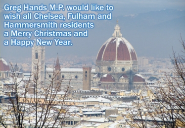 Greg Hands M.P. wishes all Chelsea, Fulham and Hammersmith residents a Merry Christmas and Happy New Year 23rd December 2011 Greg Hands M.P. would like to wish all Chelsea, Fulham and Hammersmith residents a Merry Christmas and Happy New Year. Photo - Florence Cathedral (La Basilica... Local News