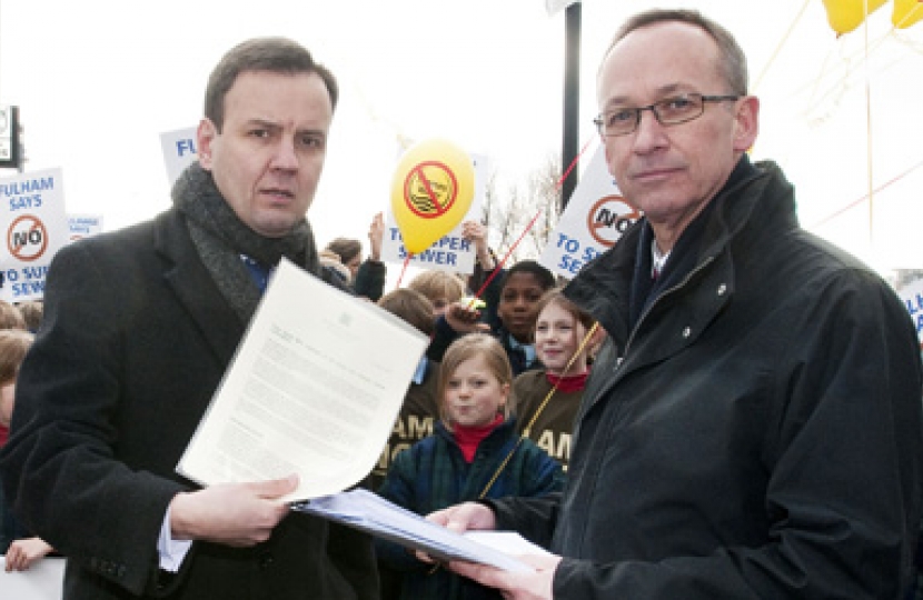 Greg Hands M.P. said: "It was good to join a big crowd of local residents to hand in the community's objection to Thames Water's proposal to devastate south Fulham. I congratulate residents for their campaign, and I also hope that Thames Water will give the proper weight to the points I made in my submission, which I handed Thames Water at the same time. The middle of a residential area like Fulham is a crazy place to dig a shaft the width of the Channel Tunnel from."