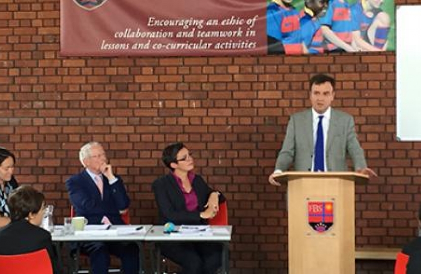 "I would like to take this opportunity to thank The Fulham Boys School's Headmaster, Alun Ebenezer, and its Chairman of Governors, Alex Wade, for their continued hard work not only in making this Free School succeed, but in making sure it goes from strength to strength."