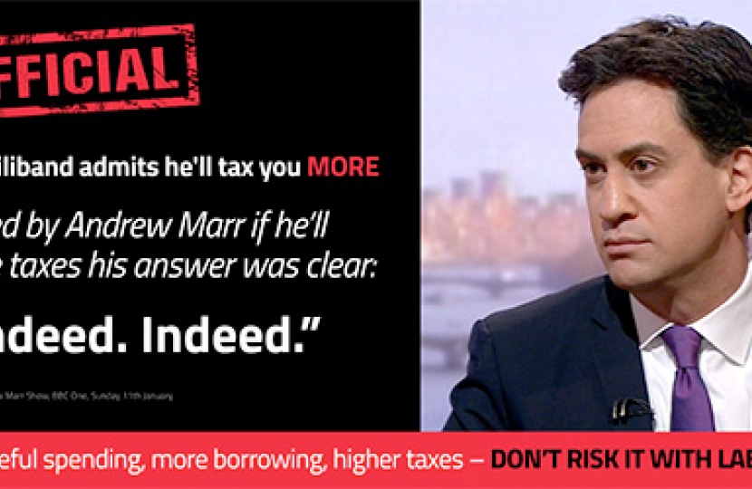 In contrast, the Conservatives have cut income tax every year they've been in office, but Ed Miliband actually doesn't believe in cutting tax.