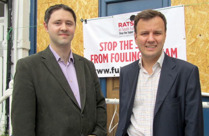 Whilst Labour are playing politics, Greg Hands M.P. has been busy standing up for Sands End residents.  This week he questioned Environment Minister Richard Benyon in the House of Commons on the ever rising cost of the Thames Tideway Tunnel scheme.  Currently estimated to be £3.6 billion, the 'Super Sewer' will cost every Thames Water bill payer £65 a year.  Greg was assured that the cost of any scheme to meet the European Union's instructions to Britain on the treatment of waste water was at the forefront of discussions with Thames Water.