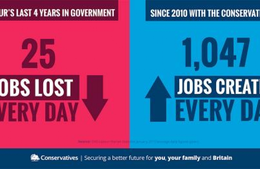 "These figures show that our plan is working. We need to stick to it. It’s the only way to keep the economy growing, and keep businesses creating jobs. We should not let Labour risk a return to higher taxes, higher spending, and borrowing which would put the brakes on our vital economic recovery.”